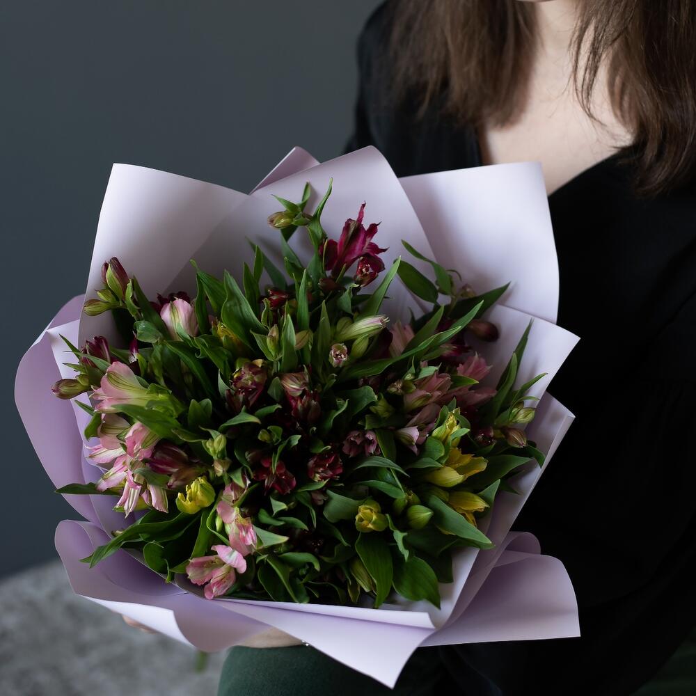 Альстромерия - 15 шт.Матовая упаковка - 2 шт.Лента атласная - 2 шт.